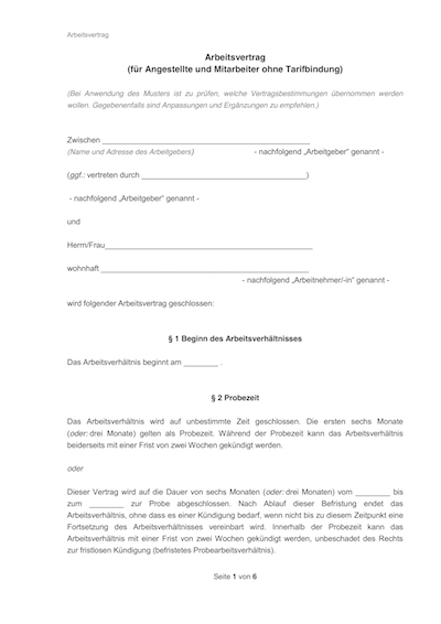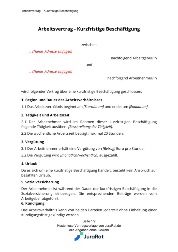 Vertrag Geringfügige Beschäftigung Vorlage als PDF gratis zum Ausdrucken