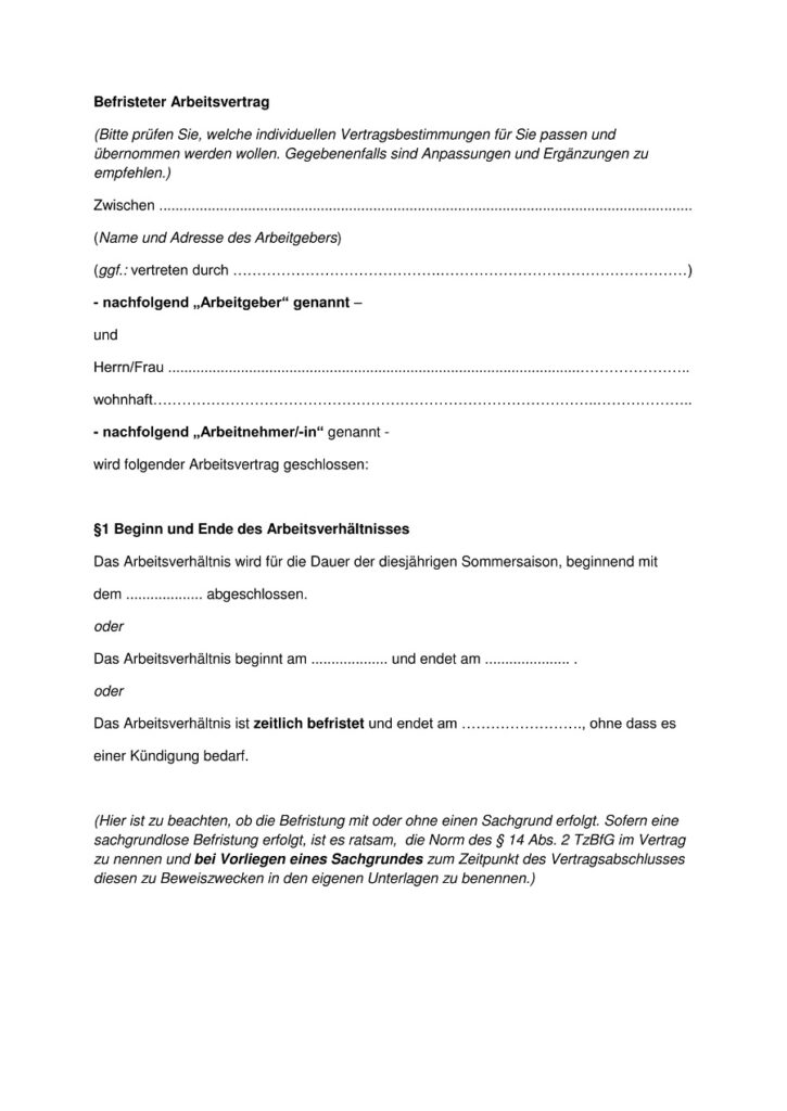 Kostenloser Muster-Arbeitsvertrag für geringfügige Beschäftigung zum Download, individuell anpassbar. Prüfen Sie vor Nutzung die passenden Vertragsbestimmungen für Ihre Zwecke.