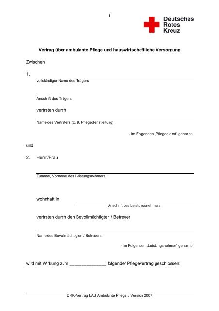 Vorlage Vertrag ambulanter Pflegedienst mit Patient BPA als PDF gratis zum Ausdrucken
