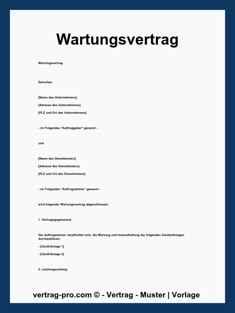 Klimaanlage Wartung Vertrag Vorlage als PDF gratis zum Ausdrucken