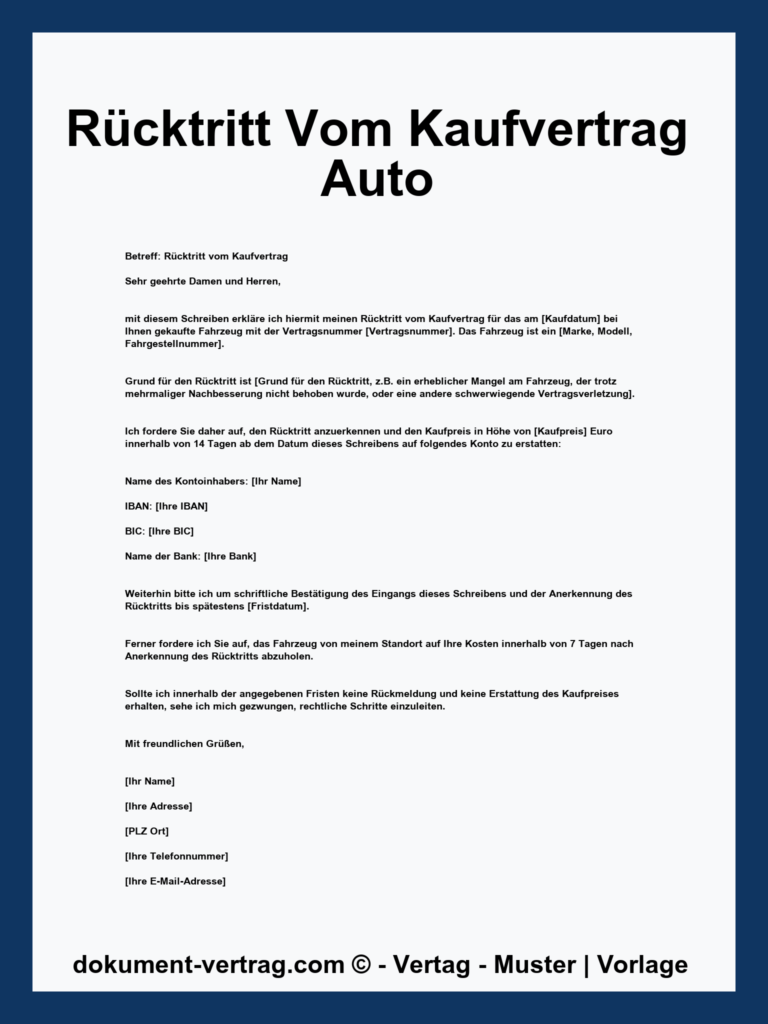 Kostenloser Download des Muster-Rücktrittsvertrags für Autokauf VW bei mangelhafter Nachbesserung. Einfach Vorlage nutzen und Rücktritt oder Kaufpreisminderung rechtssicher einreichen.