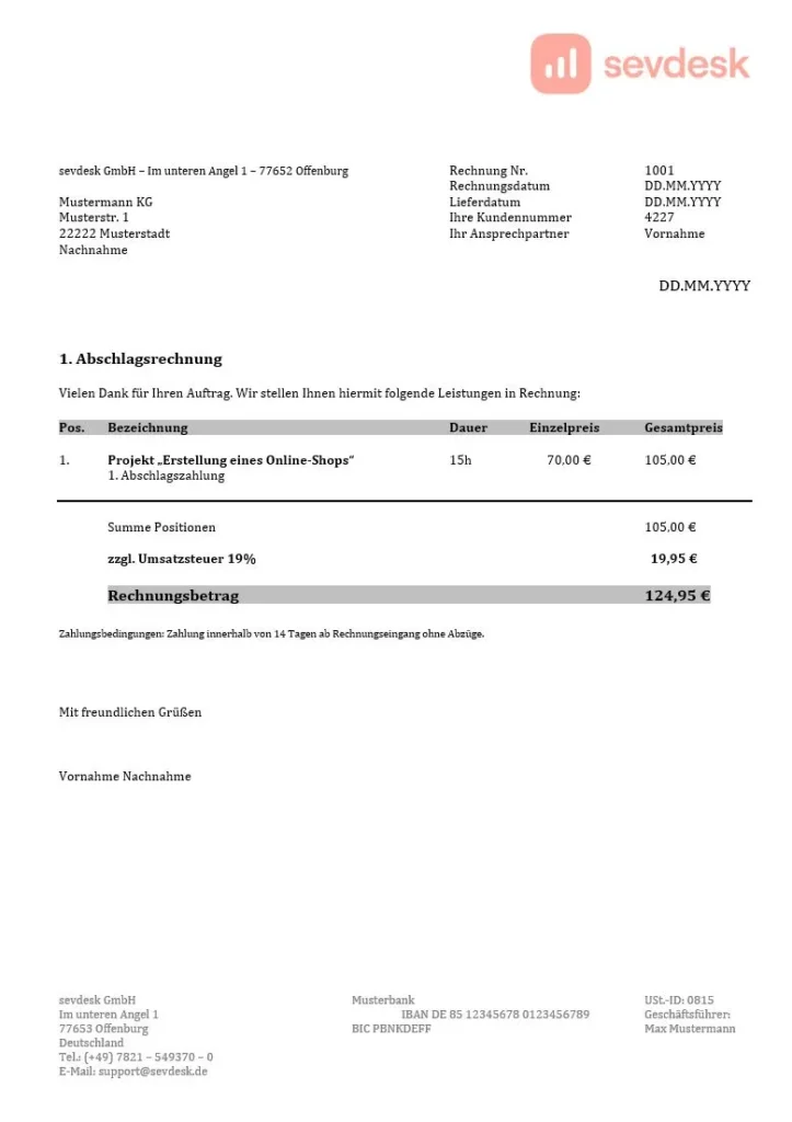 Kostenlose Vorlage für Vertrag zur Abschlagszahlung herunterladen. Muster-Ablösevereinbarung für Verkäufer und Käufer mit allen wichtigen Angaben zu Namen, Adresse und Einrichtungsgegenständen.