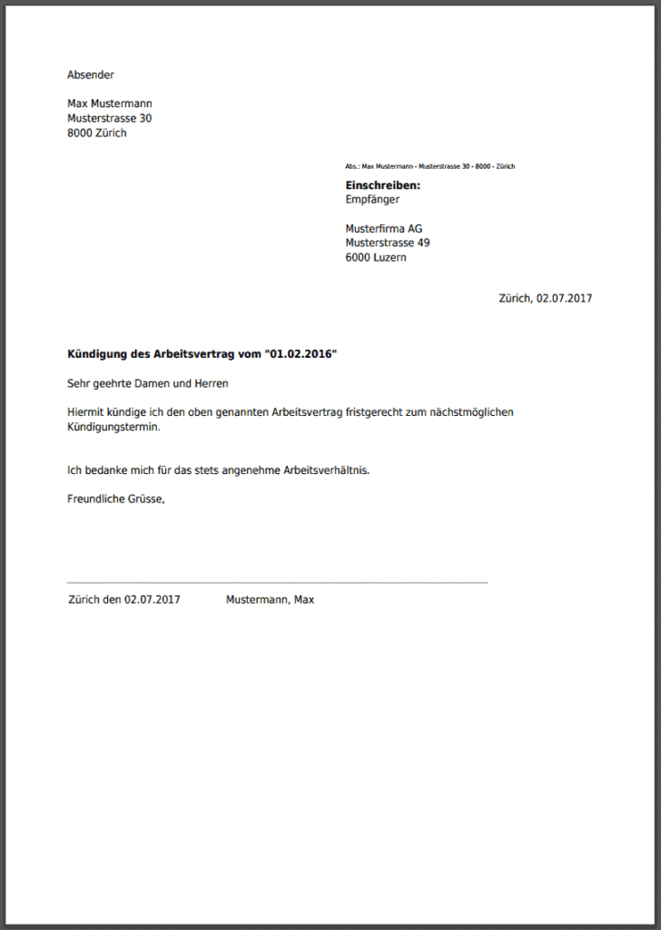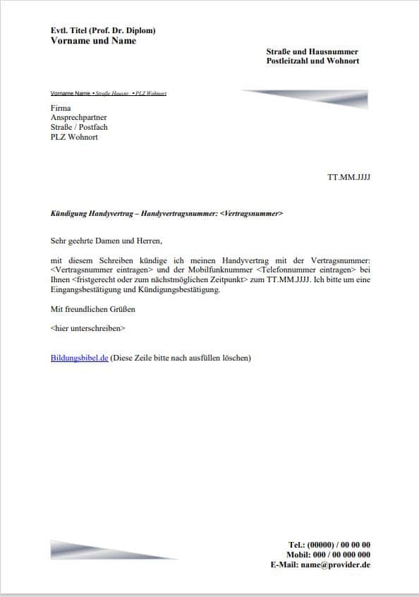 Kündigen Vorlage Vertrag Muster als PDF gratis zum Ausdrucken