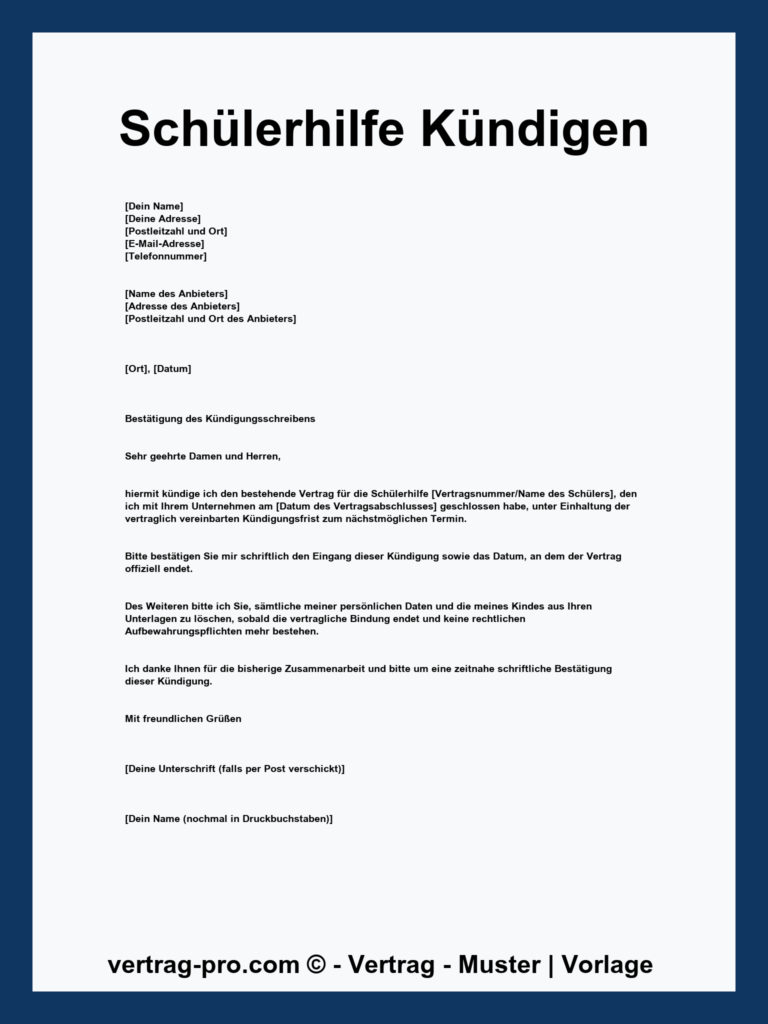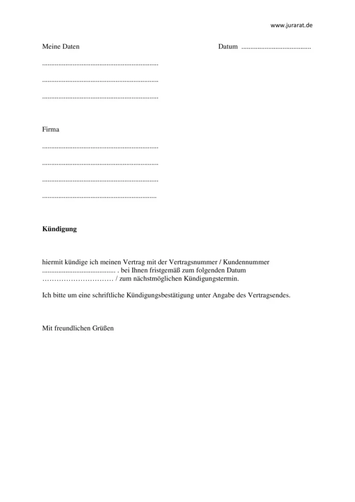 Kostenlose Kündigen Vorlage und Vertrag Muster zum Download. Einfach anpassen und problemlos Vertragskündigungen rechtssicher erstellen. Ideal für private und geschäftliche Zwecke. Schnell und unkompliziert.
